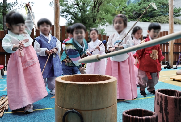 Áö³´Þ 30ÀÏ ¼¿ï ³ë¿ø±¸ÀÇ ÇÑ ¾î¸°ÀÌÁý ¿ø¾ÆµéÀÌ Ãß¼®À» ¸Â¾Æ °ö°Ô ÇѺ¹À» ÀÔ°í ÅõÈ£¸¦ Çϰí ÀÖ´Ù.